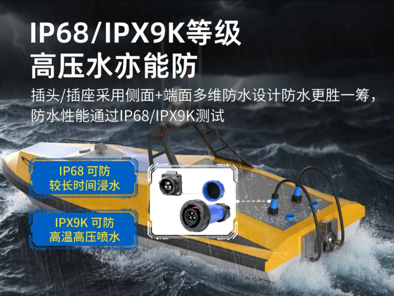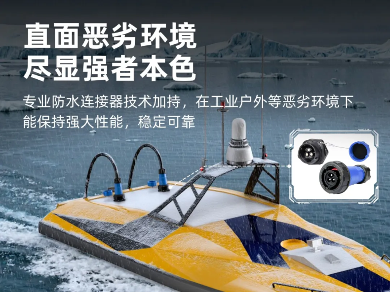 無人船是水域監(jiān)測、水質(zhì)采樣、測繪等方面的關(guān)鍵設備,其電氣連接的高防護性、環(huán)境耐受性及空間適應性,是保障無人船作業(yè)可靠與效能的核心要素。